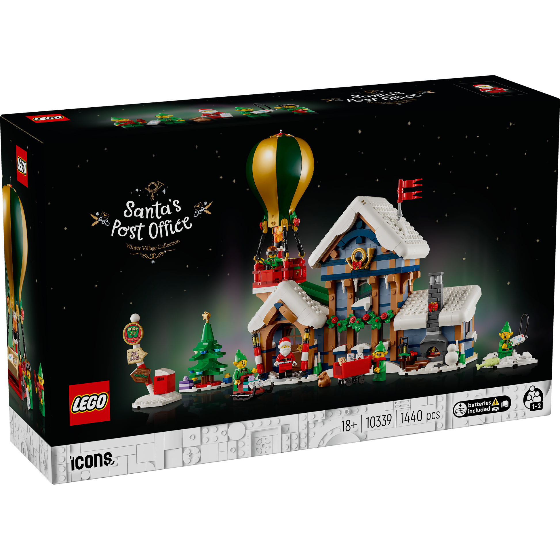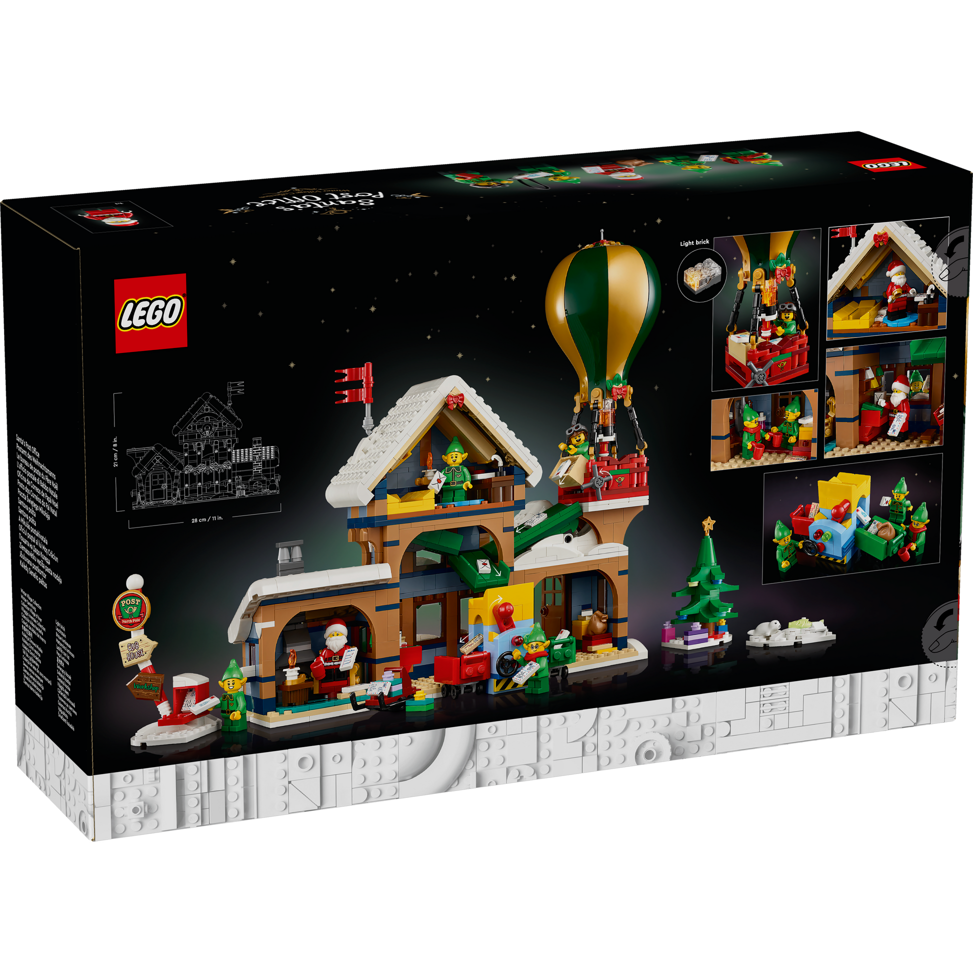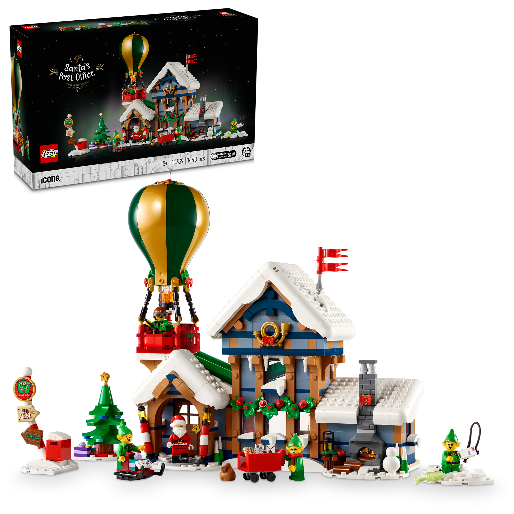 - What’s in the box? – Models include Santa’s Post Office, a hot-air balloon, letter sorter, ice-fishing scene, Christmas tree, signpost, mailbox and sled, plus a Santa minifigure and 4 elf figures