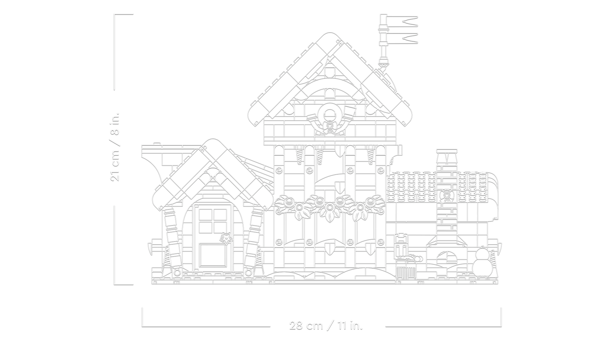 - Dimensions – The post office in this 1,440-piece building set measures over 8 in. (21 cm) high, 11 in. (28 cm) wide and 4 in. (10 cm) deep